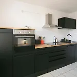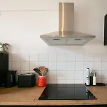 O Charmante Wohnung In Leipzig, Kirschbergstrasse dispõe de cozinha equipada com forno e máquina de lavar loiça.